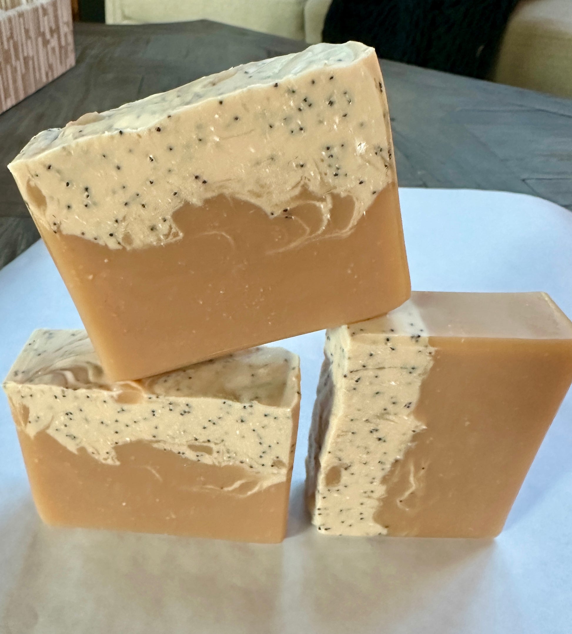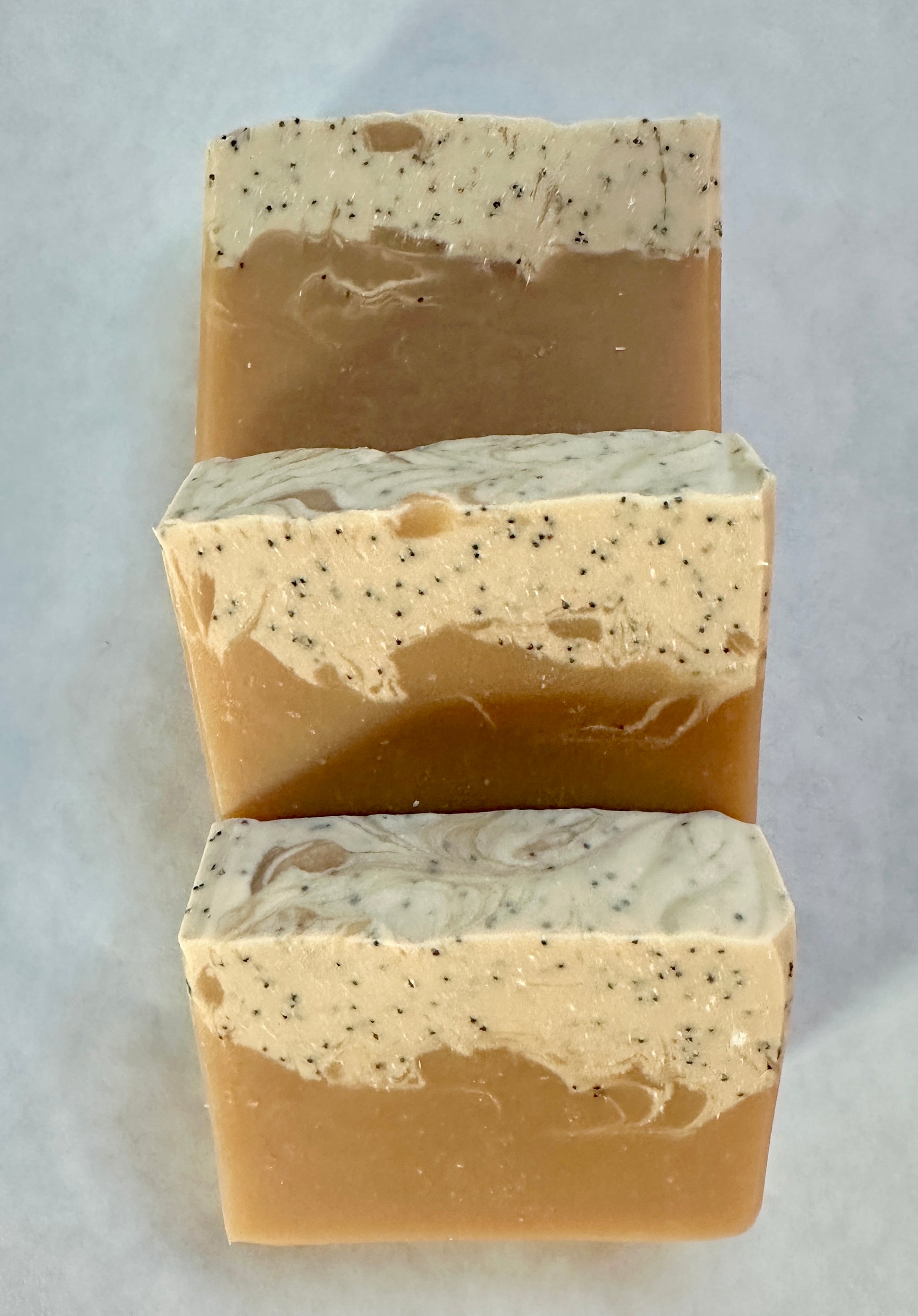 Saponified: Goat Milk, Olive Oil, Palm Oil, Coconut Oil, Castor Oil, Sweet Almond Oil, Cocoa Butter, Shea Butter, Mango Butter