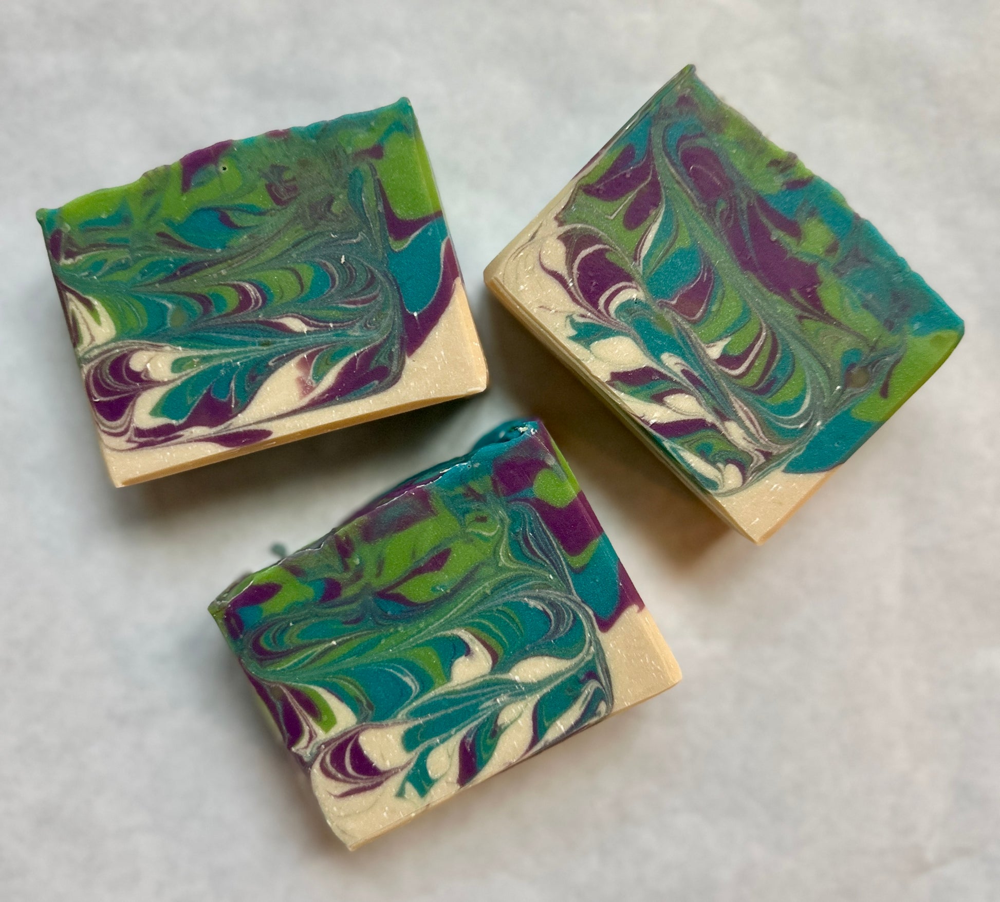 Saponified: Goat Milk, Olive Oil, Palm Oil, Coconut Oil, Castor Oil, Sweet Almond Oil, Cocoa Butter, Shea Butter, Mango Butter