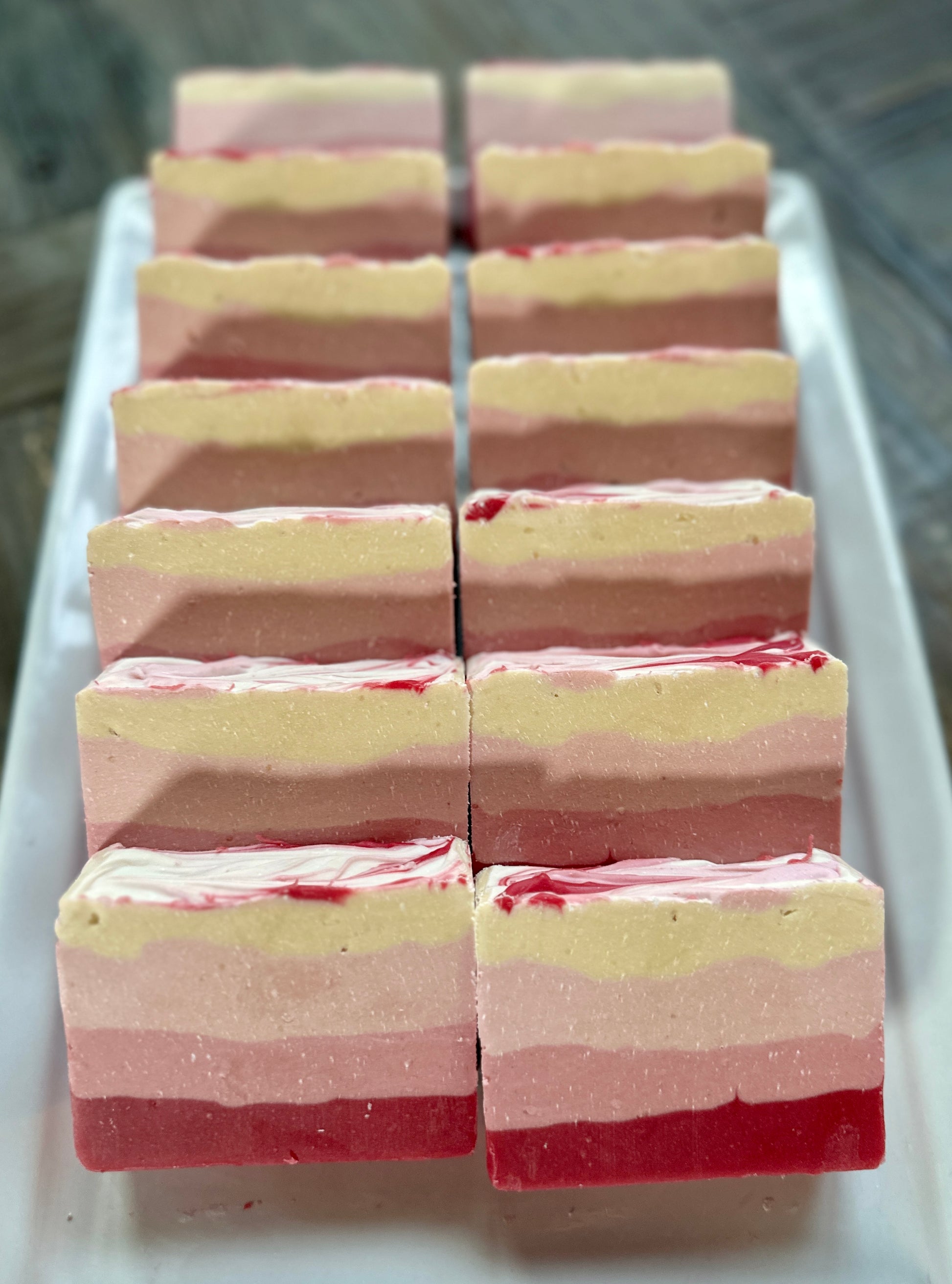 Saponified: Goat Milk, Olive Oil, Palm Oil, Coconut Oil, Castor Oil, Sweet Almond Oil, Cocoa Butter, Shea Butter, Mango Butter